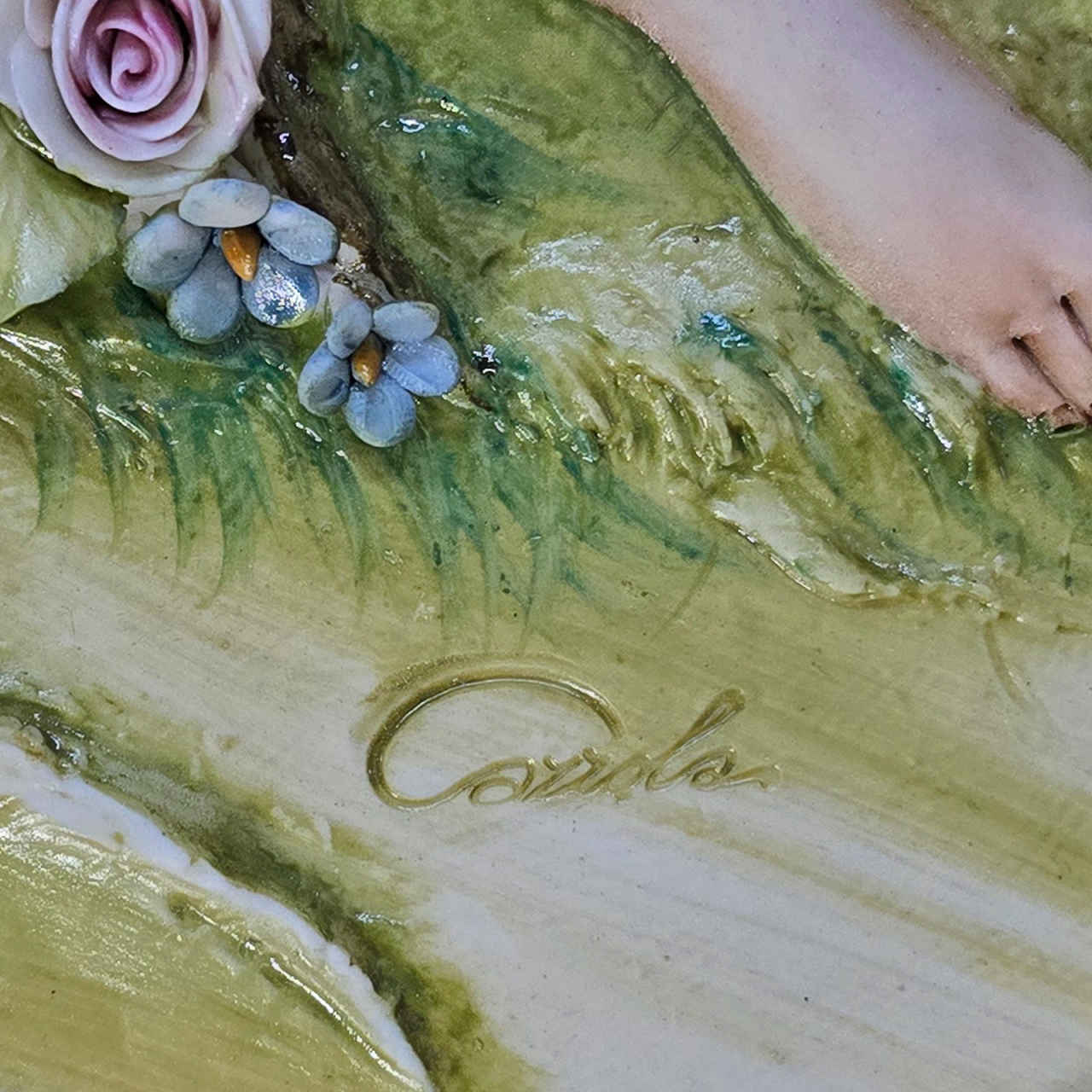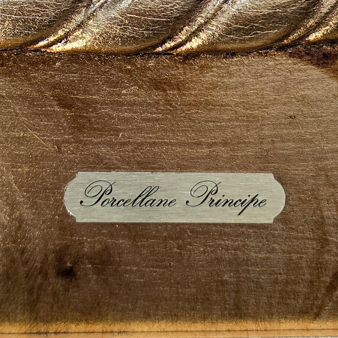 Погрузитесь в мир изысканной красоты с этим роскошным фарфоровым панно от итальянской мануфактуры Porcellane Principe. Классическая композиция выполнена в форме живописного барельефа и помещена в наборную деревянную раму, покрытую теплой золотой паталью.