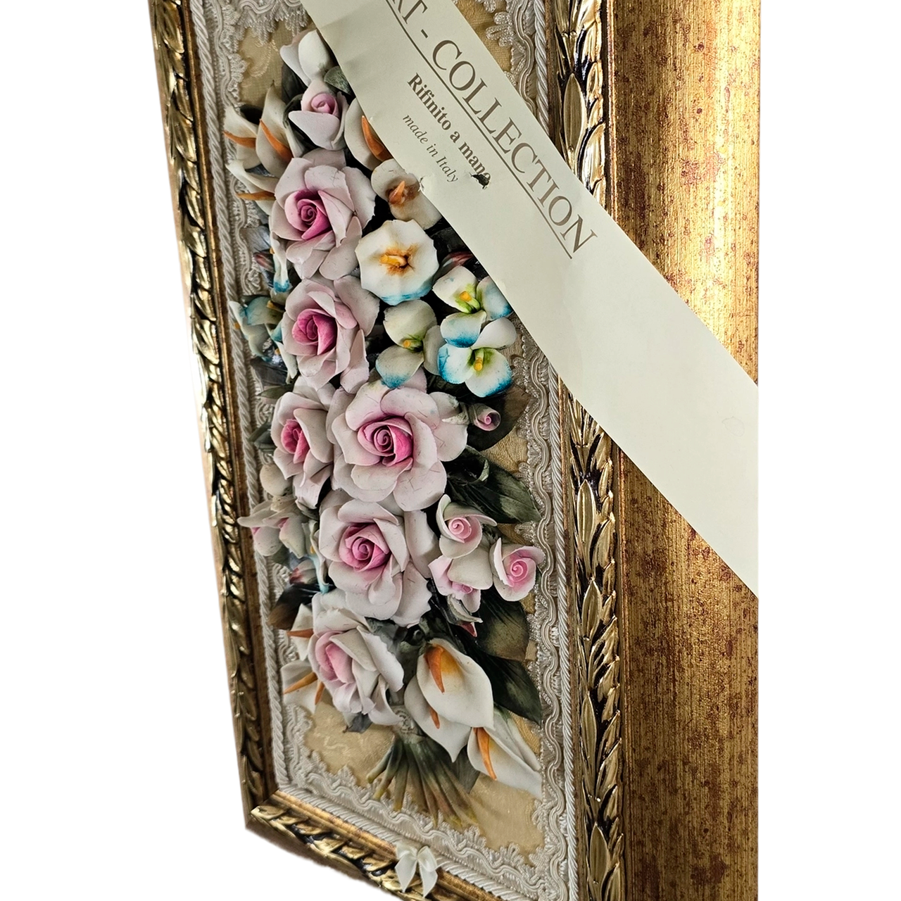 Изысканное панно Arte Casa «Букет» (32x52 см). Ручная работа и роспись из Италии. Керамика на гобелене в деревянном багете. Подчеркните статус интерьера. Чтобы купить эксклюзивный декор - оформляйте!