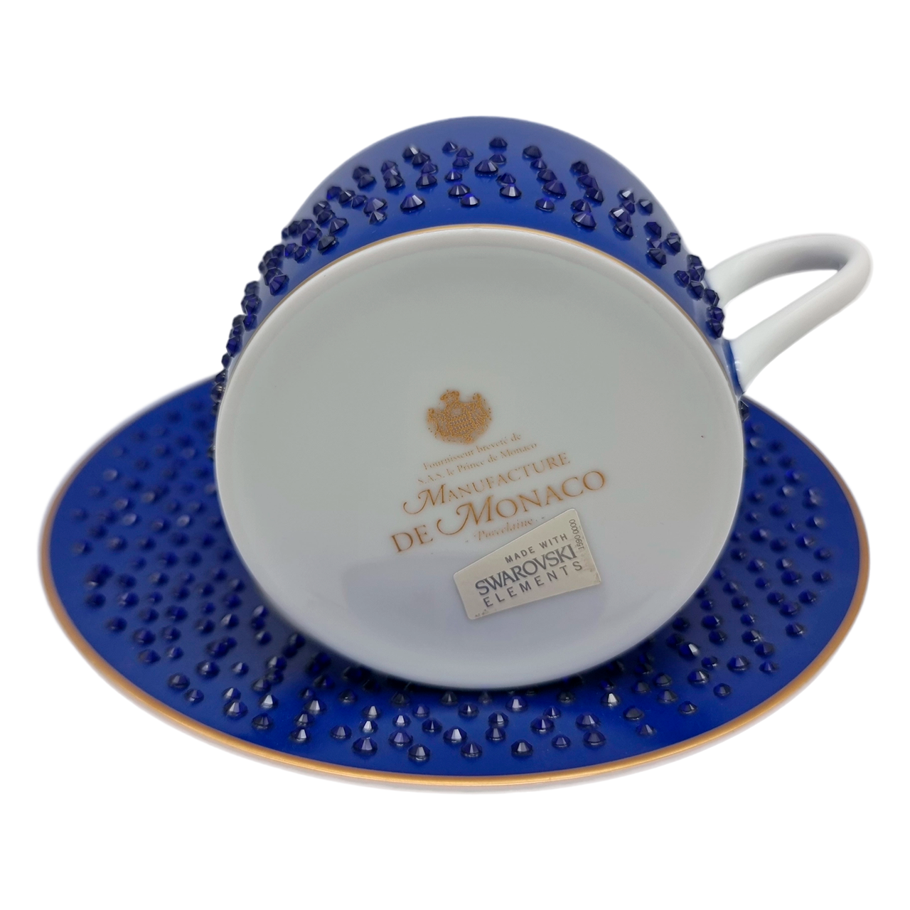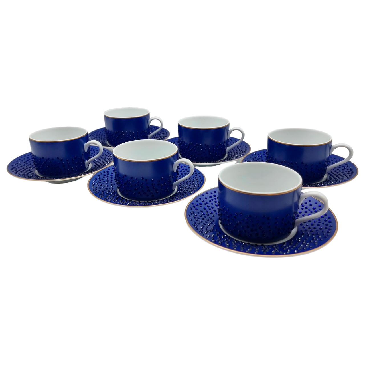 Эксклюзивный чайный набор «Кобальт» на 6 персон. Фарфор цвета королевского синего с подлинными кристаллами Swarovski. Объем 200 мл. Купить премиальный сервиз MANUFACTURE DE MONACO