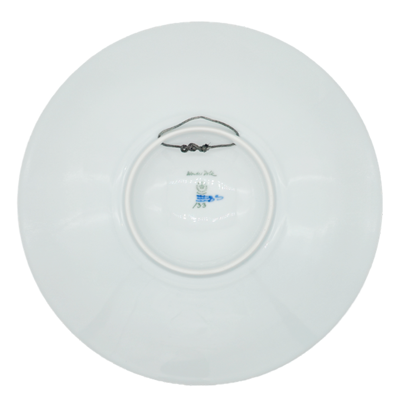 Уникальность каждого изделия гарантирована ручным трудом: даже одинаковые модели из одной коллекции имеют индивидуальный характер. На оборотной стороне вы найдете порядковый номер блюда, фирменное клеймо Royal Copenhagen Denmark с короной, знаком трёх волн и личную подпись художника — Wouter Dolk.
