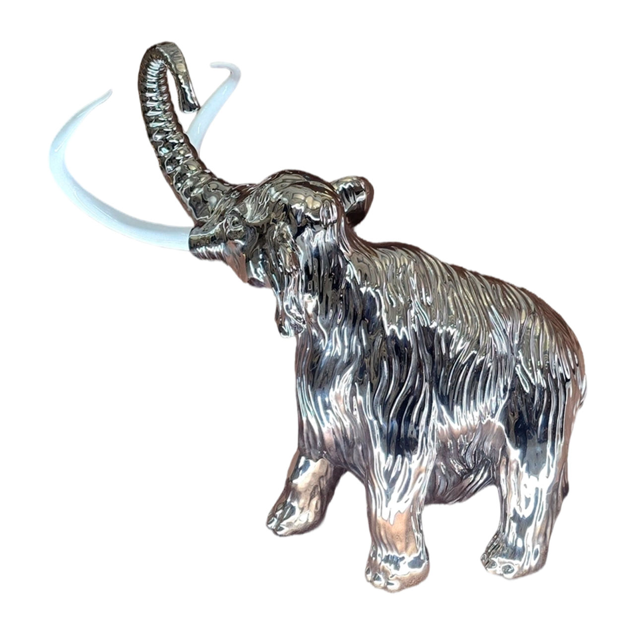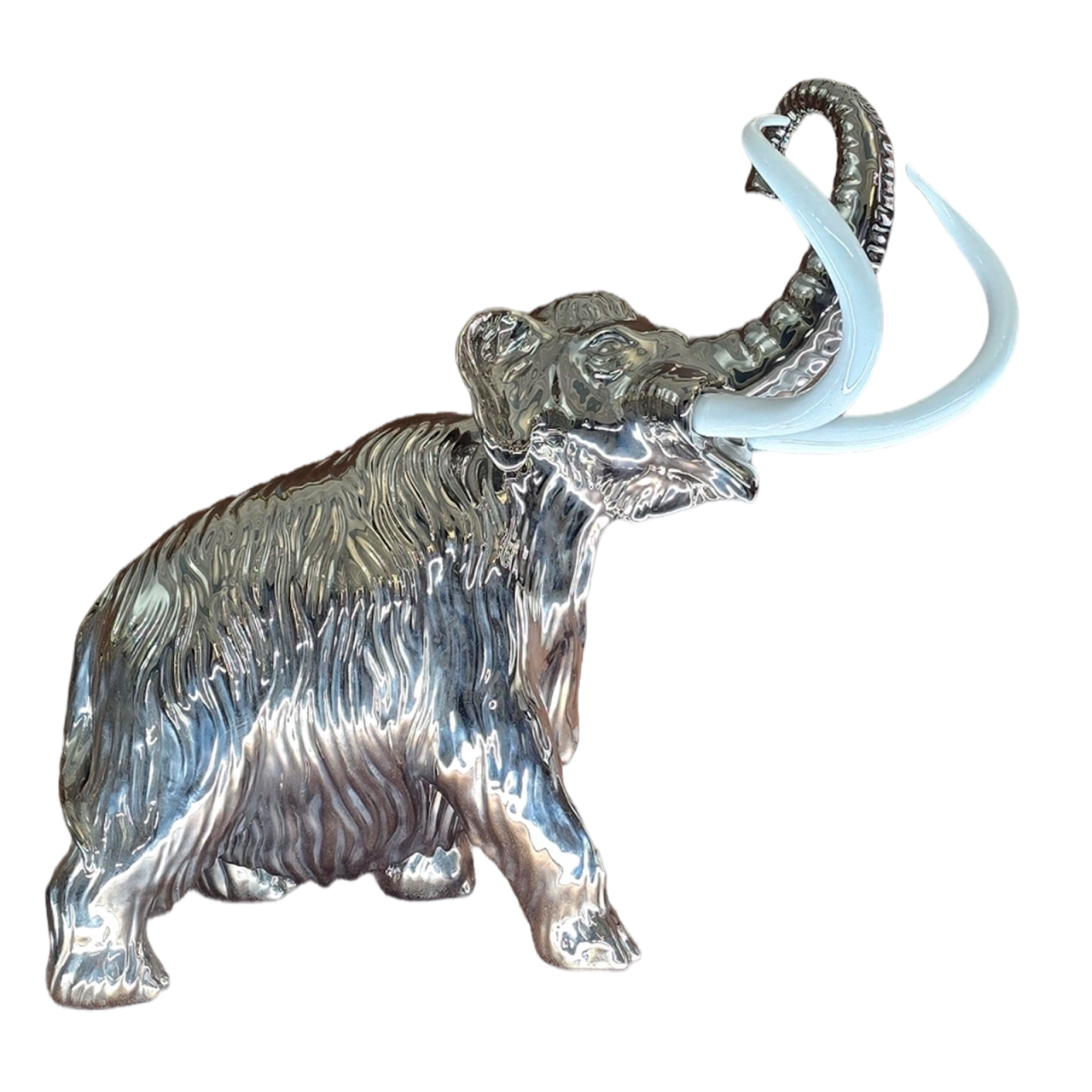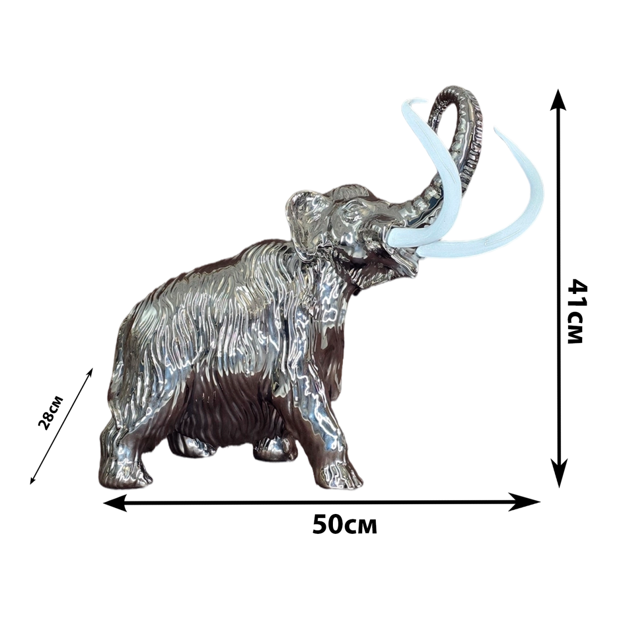 Премиальная статуэтка «Мамонт» из керамики от Ahura. Платиновое покрытие и белые бивни. Уникальная работа ручной доводки. Купить эксклюзивный декор для интерьера.