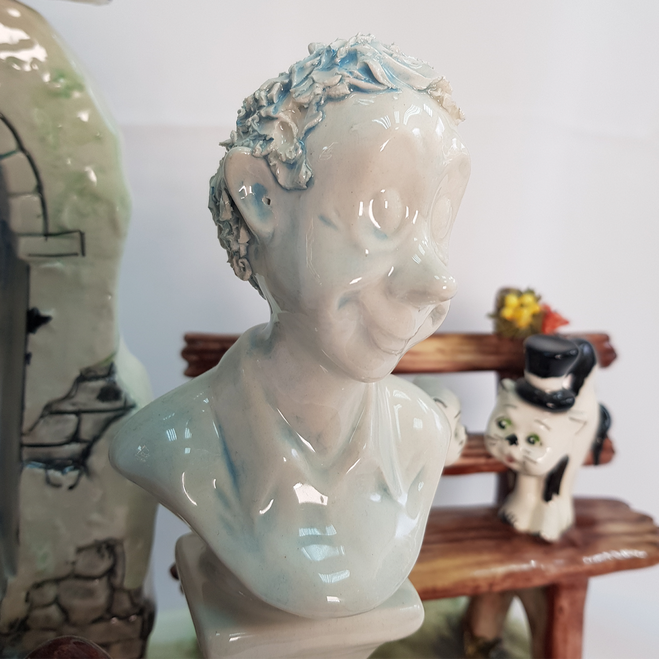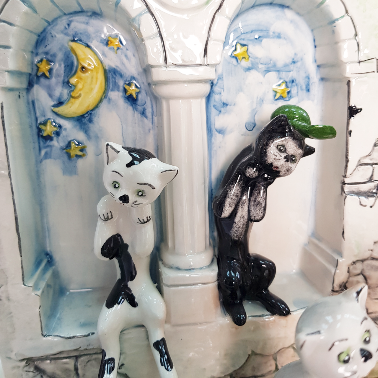 Яркая керамическая скульптура «Кошки в парке» от итальянского мастера Lino Zampiva. Ручная работа, лимитированный выпуск 90/300. Высота 24 см. Купить эксклюзив для коллекции или уникальный подарок