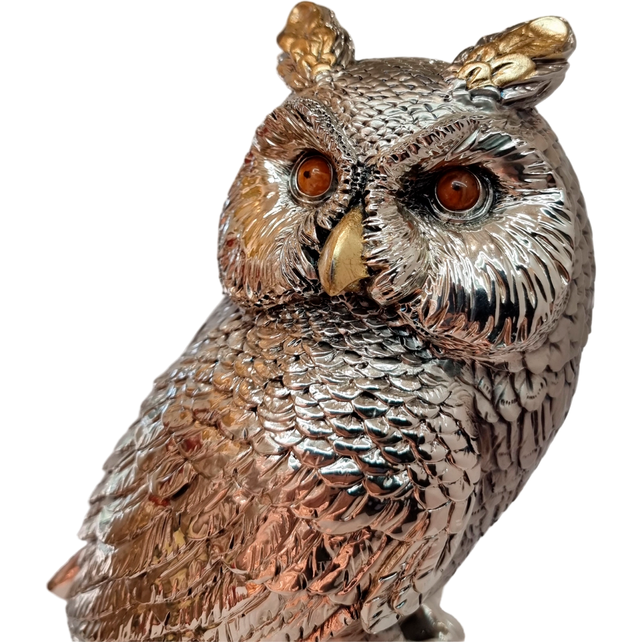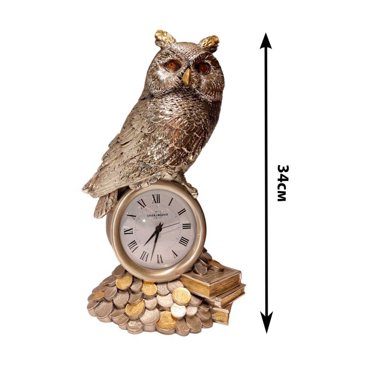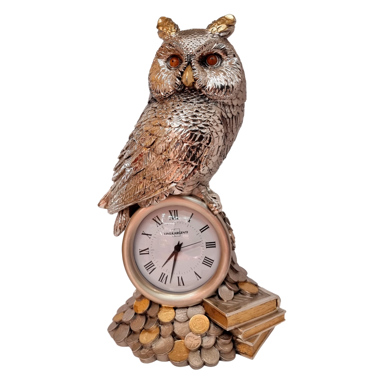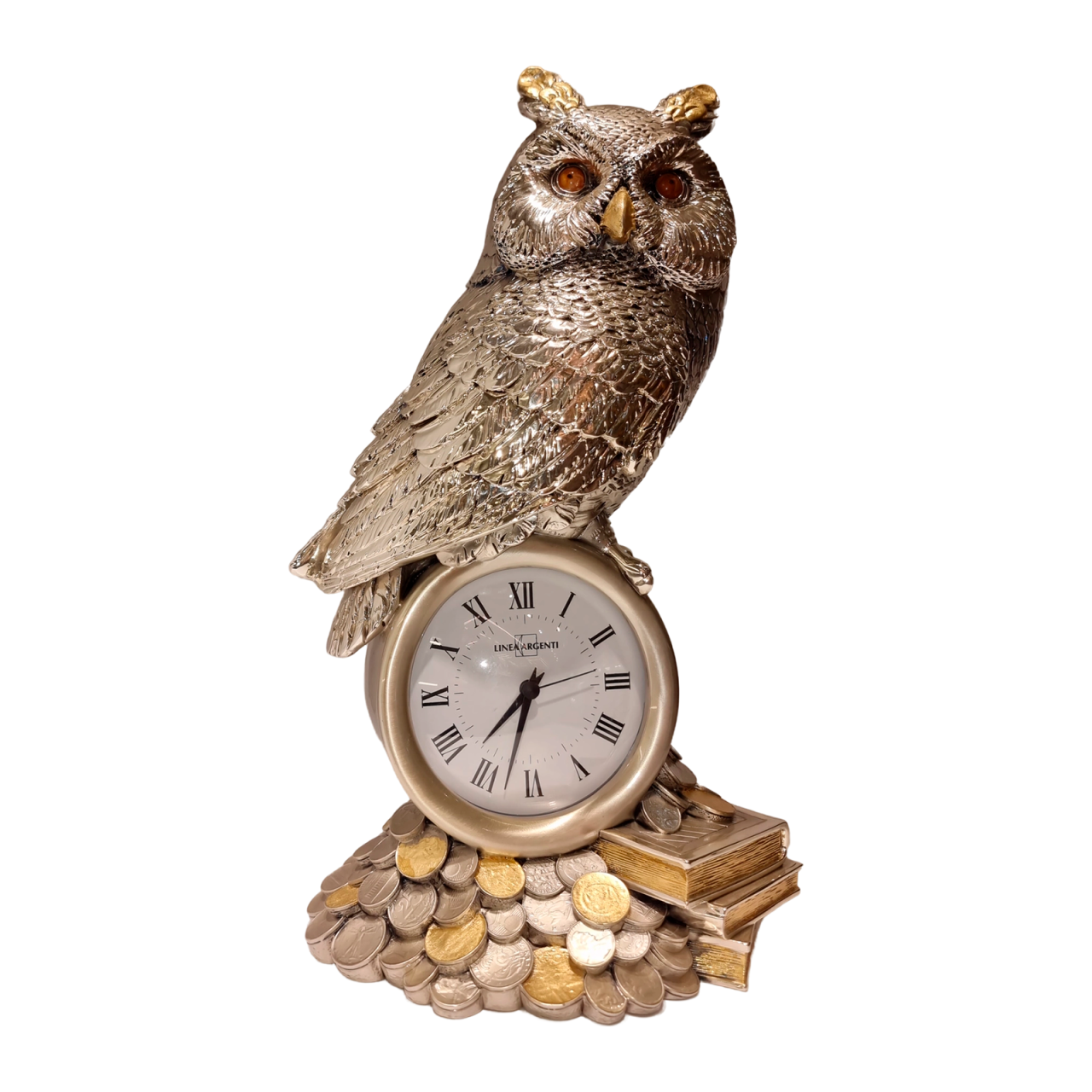 Изящные настольные часы «Сова на книгах» от итальянской фабрики Linea Argenti. Кварцевый механизм, высота 34 см. Купить для кабинета, библиотеки или гостиной с доставкой.