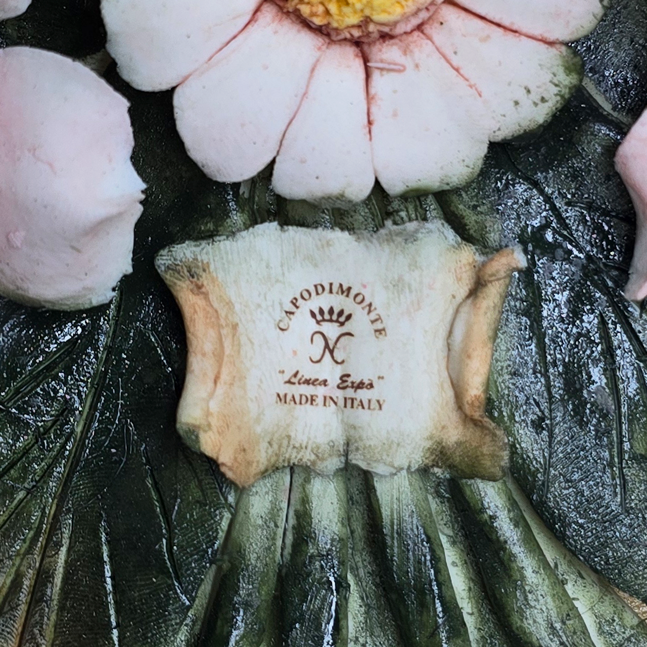 Воздушное панно с гортензией и розами от фабрики Artagiano Capodimonte. Тончайшая керамика ручной работы в деревянной раме с золотым покрытием. Размер 50х40 см. Идеально для подарка. Купить оригинал.
