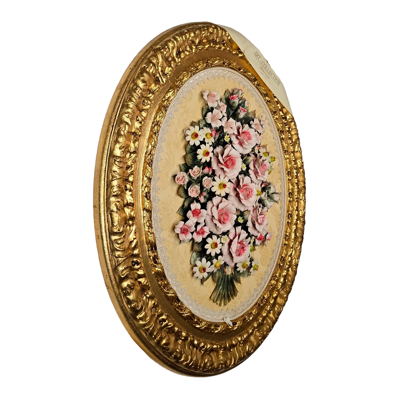 Уникальное панно с десятками фарфоровых цветов ручной лепки. Большой размер 80х70 см, деревянный багет с позолотой, Италия (Arte Casa). Статусная картина для интерьера. Купить редкое панно из керамики