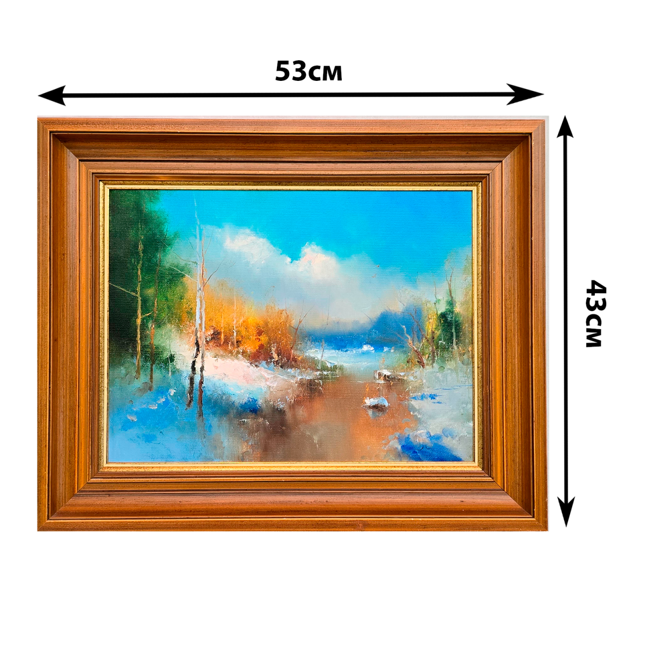 Купить картину «Весеннее обострение» Игоря Медведева – масло на холсте 30х40 см в итальянском деревянном багете 43х53 см. Яркий весенний пейзаж для вашего интерьера!