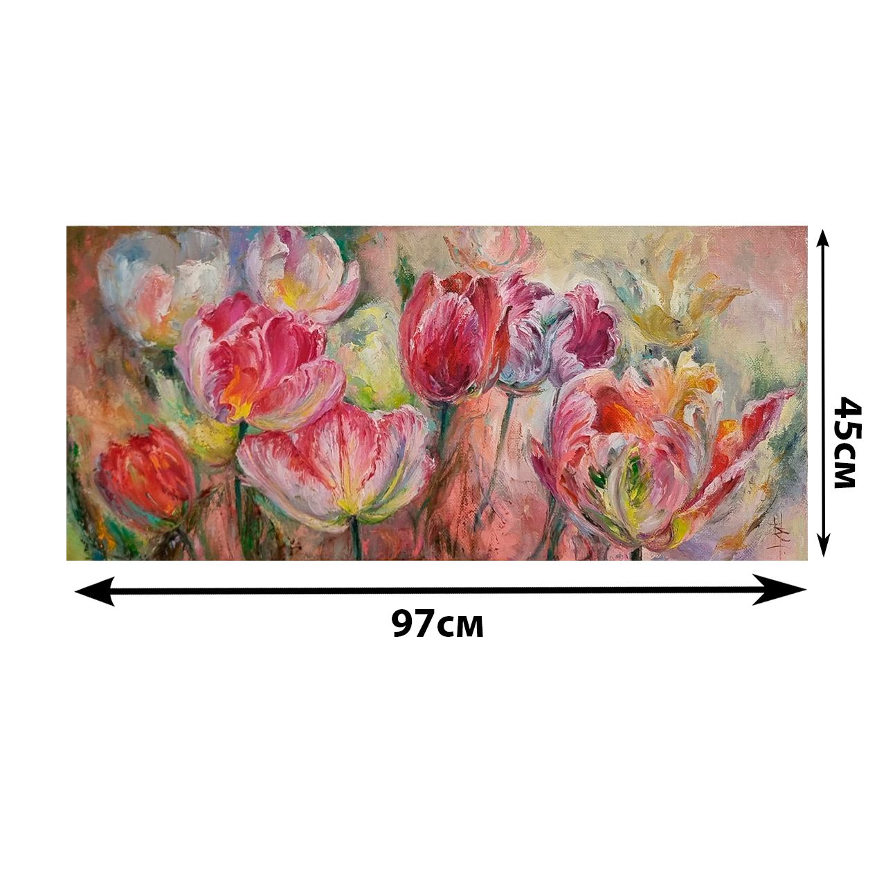 Весеннее настроение в ваш дом! Представляем картину «Весенние чувства» Е. Острой — масло на холсте 45×97 см. Живые тюльпаны с нежной фактурой. Идеальный подарок или акцент в интерьер. Купить оригинал.