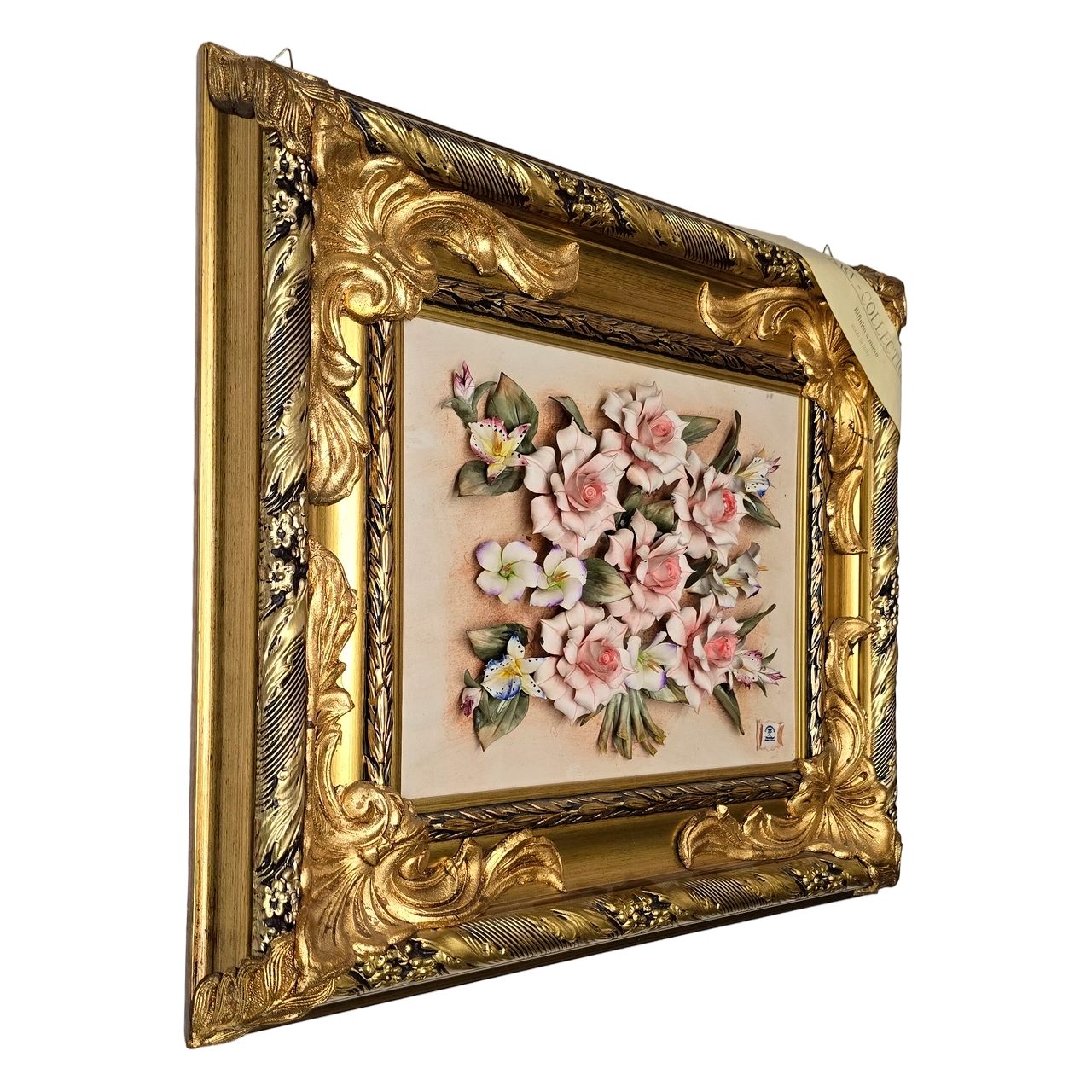 Каждый лепесток и стебель этого букета — результат кропотливого труда итальянских мастеров. Фарфоровая пластика высочайшего качества проработана до мельчайших нюансов, создавая игру света и тени на объемных элементах композиции. Это придает панно эффект живой, дышащей поверхности.