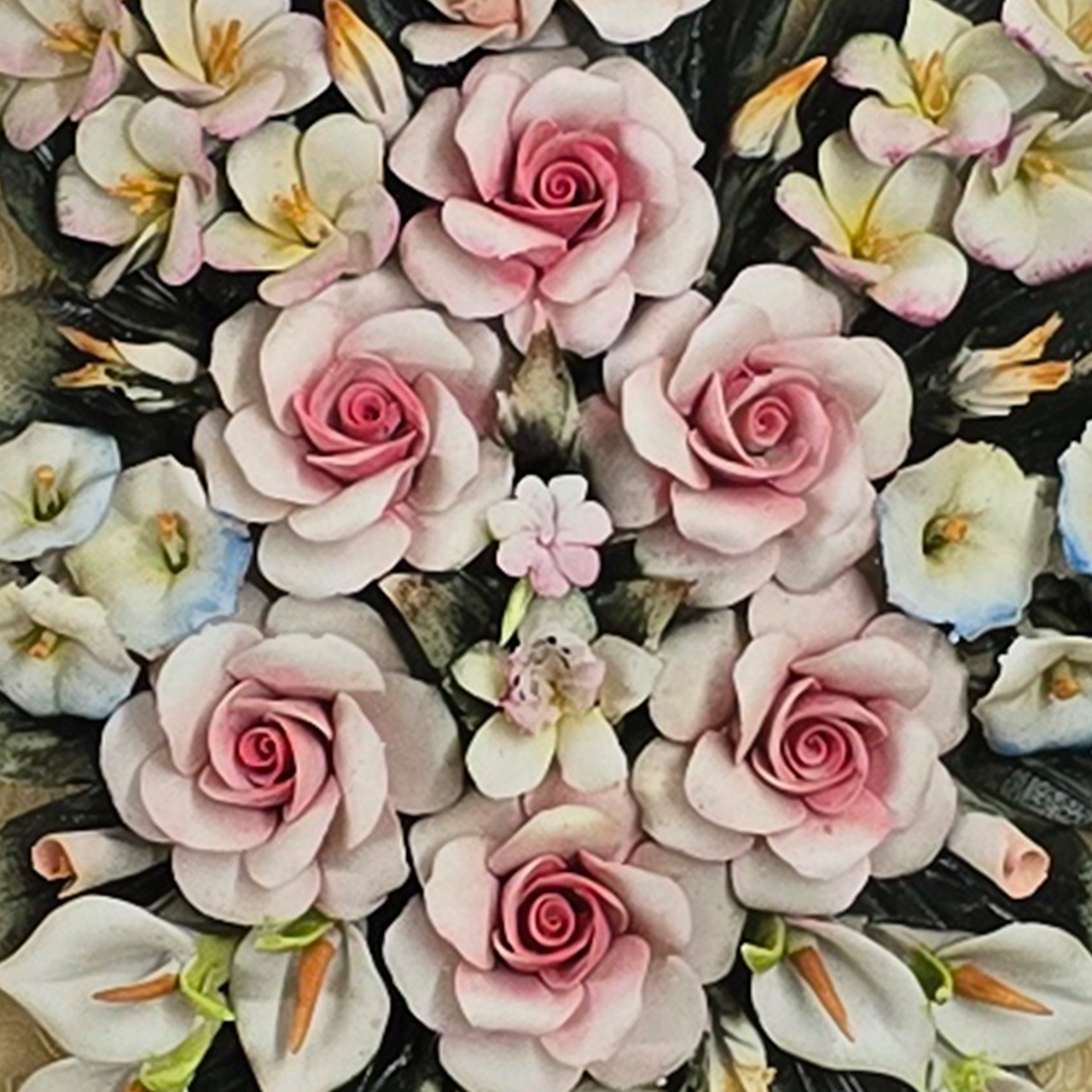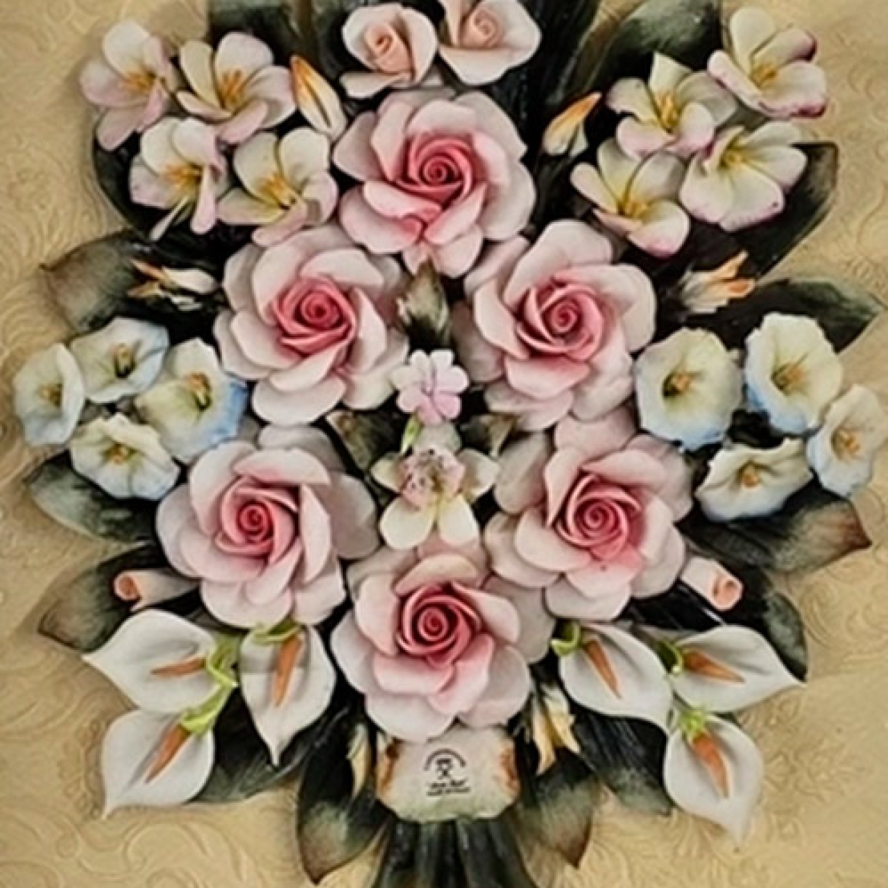 В основе изделия — тонкая ручная работа. Каждый лепесток и лист в букете выполнен из высококачественной итальянской керамики, что придает панно уникальную текстуру и игру светотени. Благодаря керамике, цветы выглядят живо и естественно, создавая эффект настоящего букета, навечно застывшего в цветении.