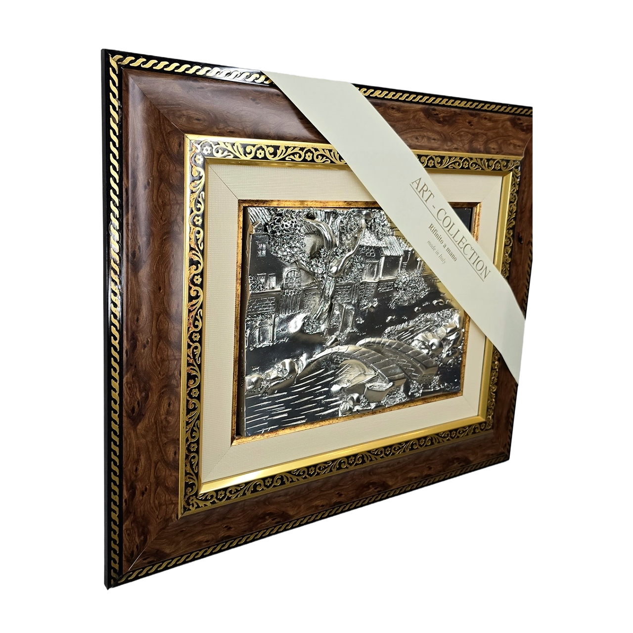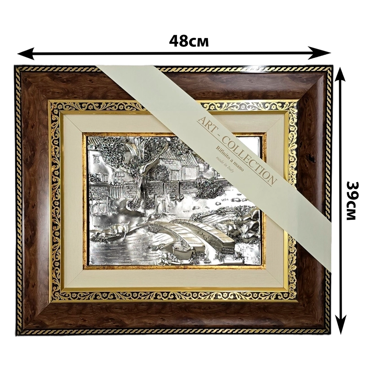 Изысканное панно «Прибрежный город» 48х39 см от итальянской фабрики Arte Casa. Благородный серебряный декор в раме с имитацией «под дерево». Создайте атмосферу Средиземноморья у себя дома. Доставка.