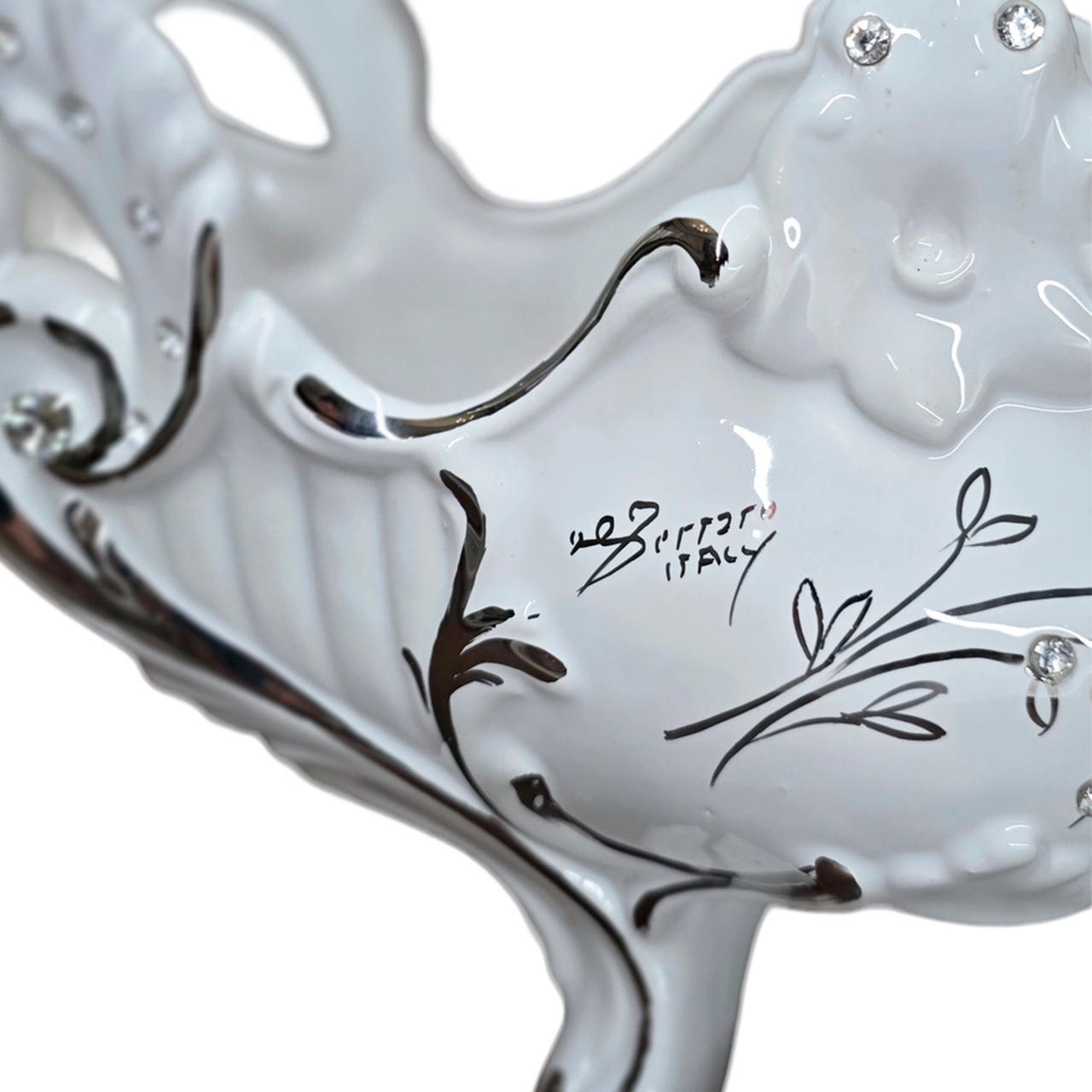 Купить изящную вазу «Ветка с ягодами» от фабрики Ferraro. Белая керамика с платиновой отделкой и стразами для роскошного декора центра стола. Итальянское качество.