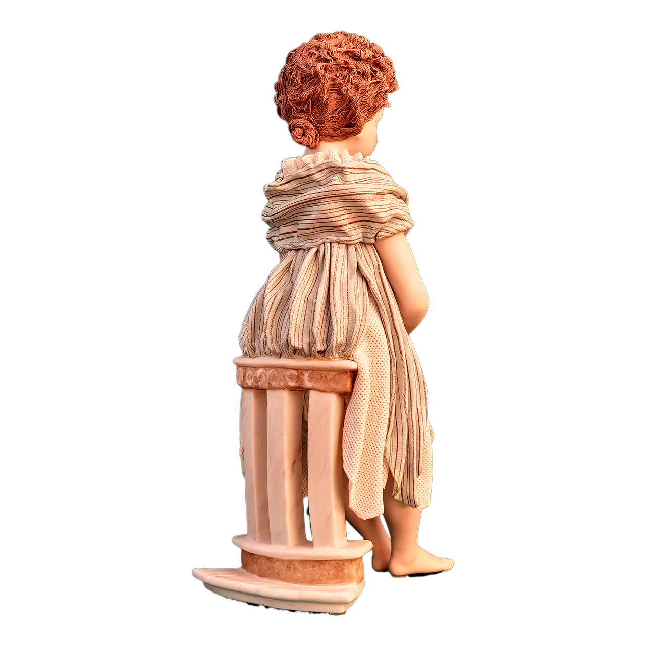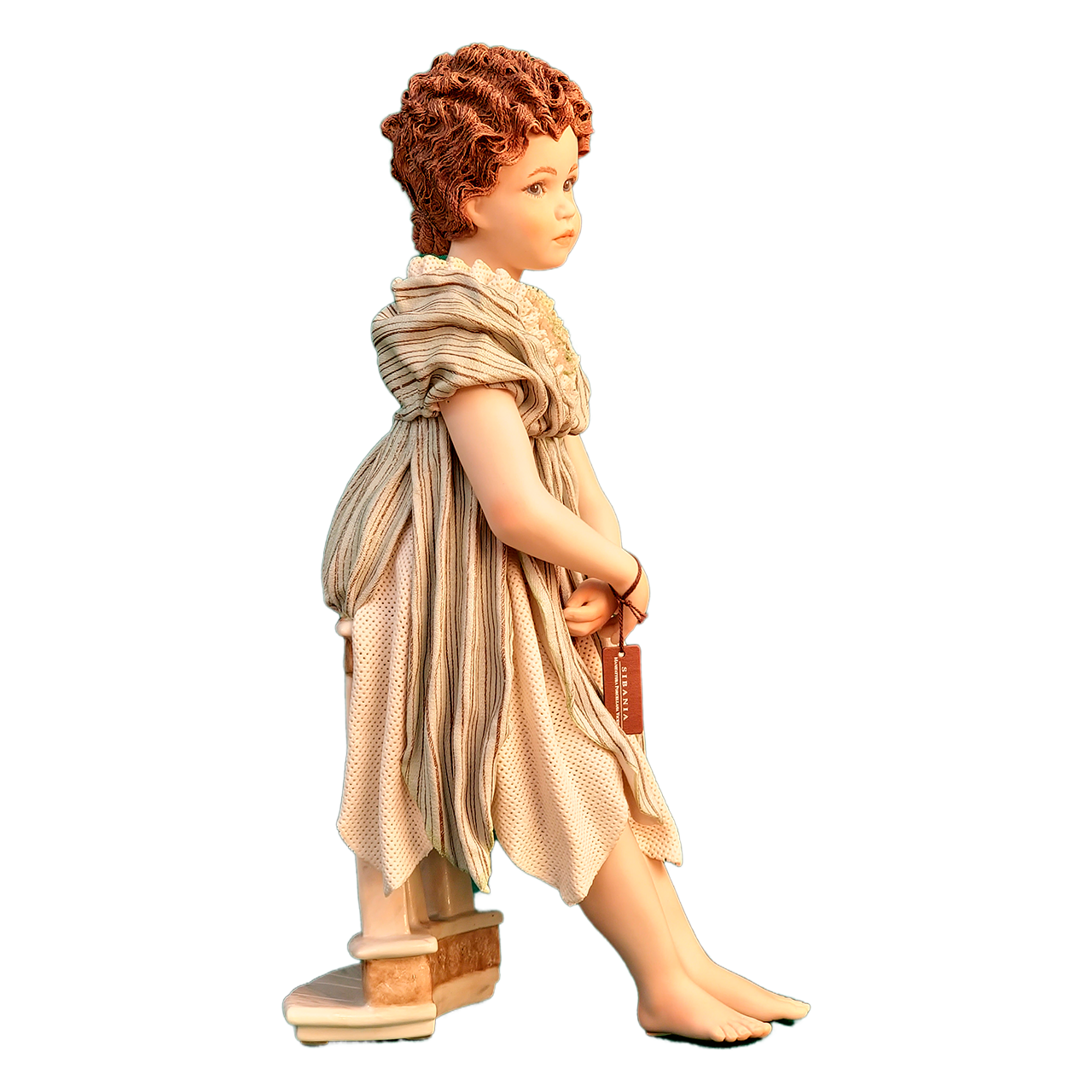 Детализация: Волосы девочки — это отдельный шедевр. Мастера вручную создали тонкие волнистые пряди, которые выглядят как настоящие кудри. Это редкая и сложная работа.