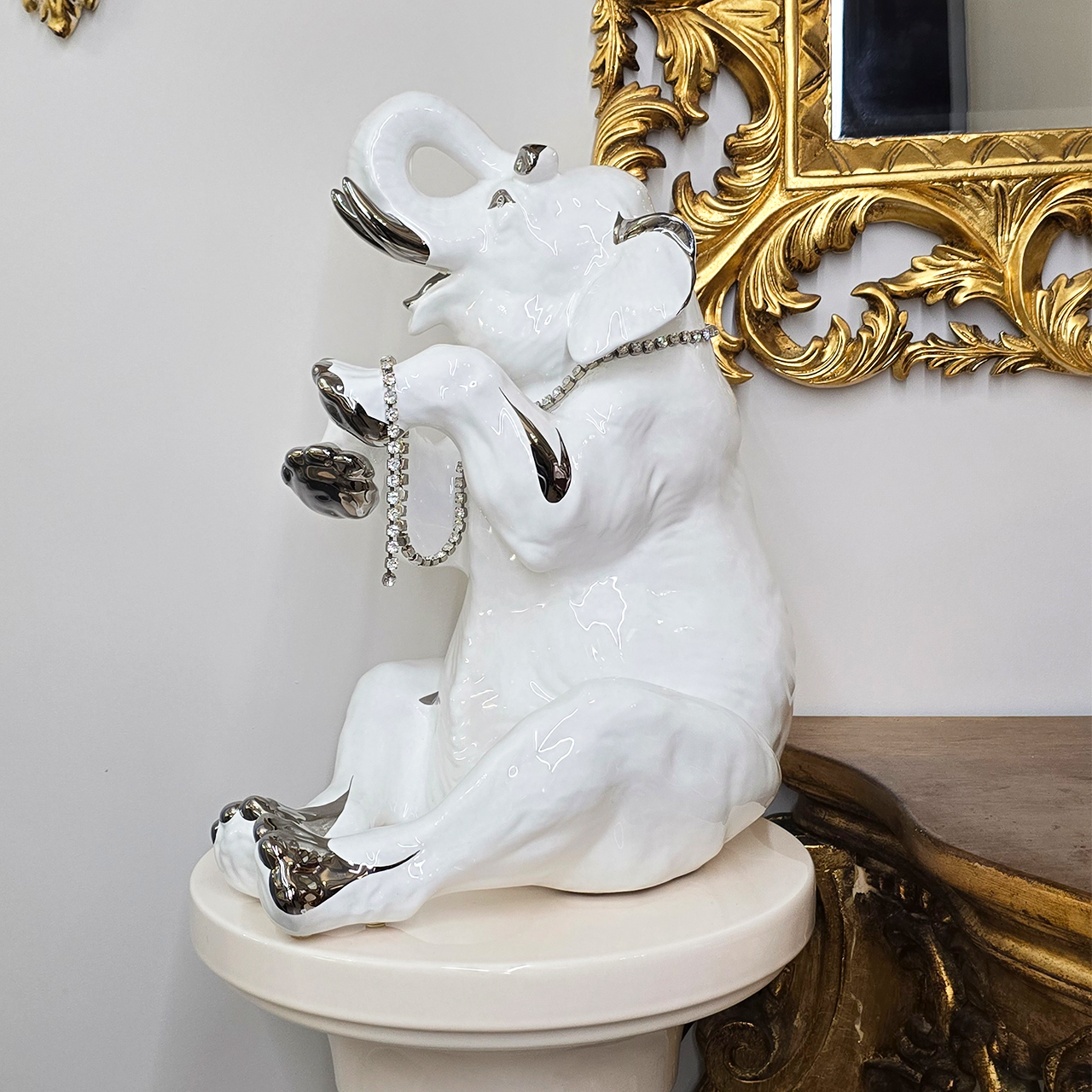 Эксклюзивная статуэтка «Слон цирковой» из белой керамики с платиновой отделкой и стразами от итальянской фабрики Ahura. Символ мудрости и роскоши для вашего интерьера. Купить шедевр для коллекции.