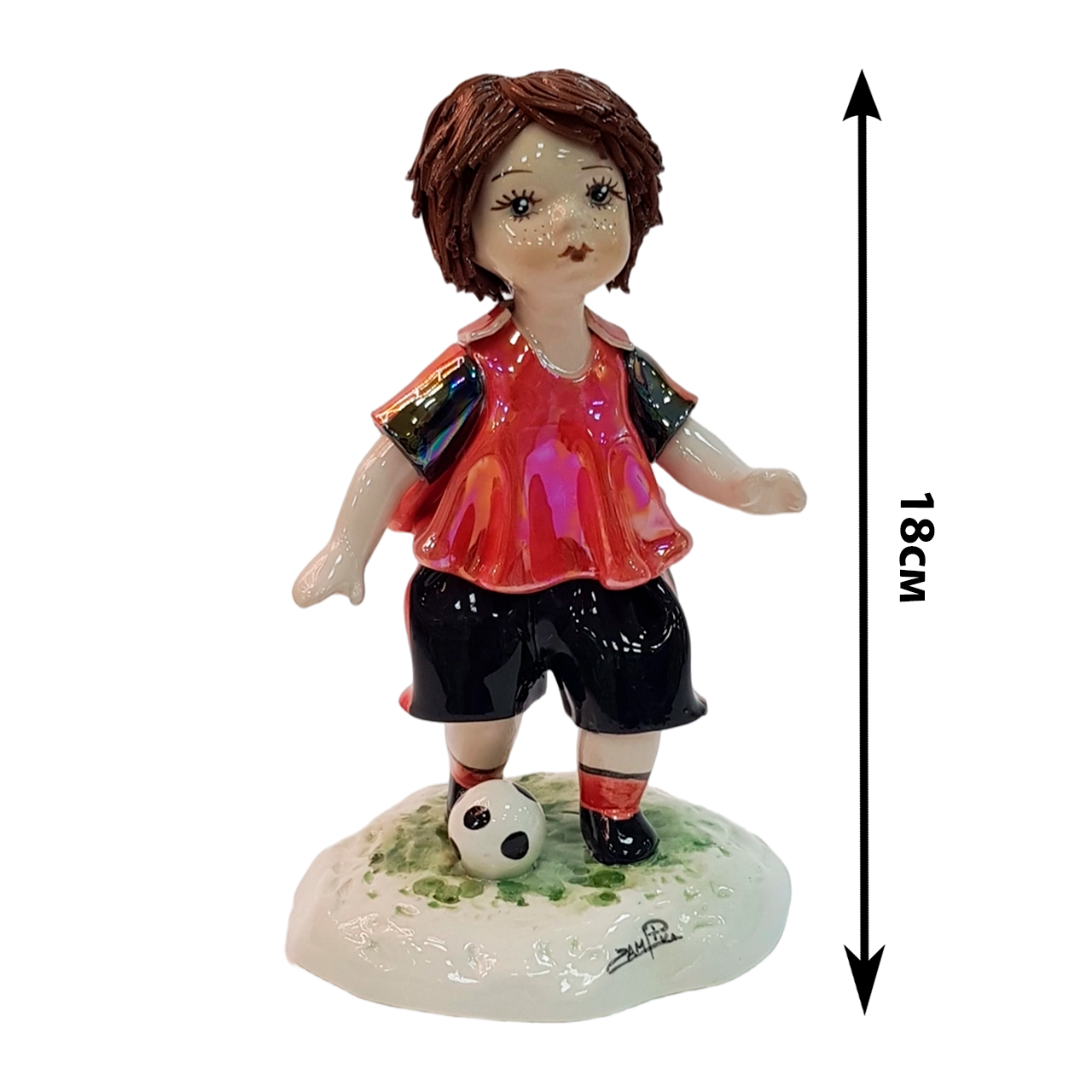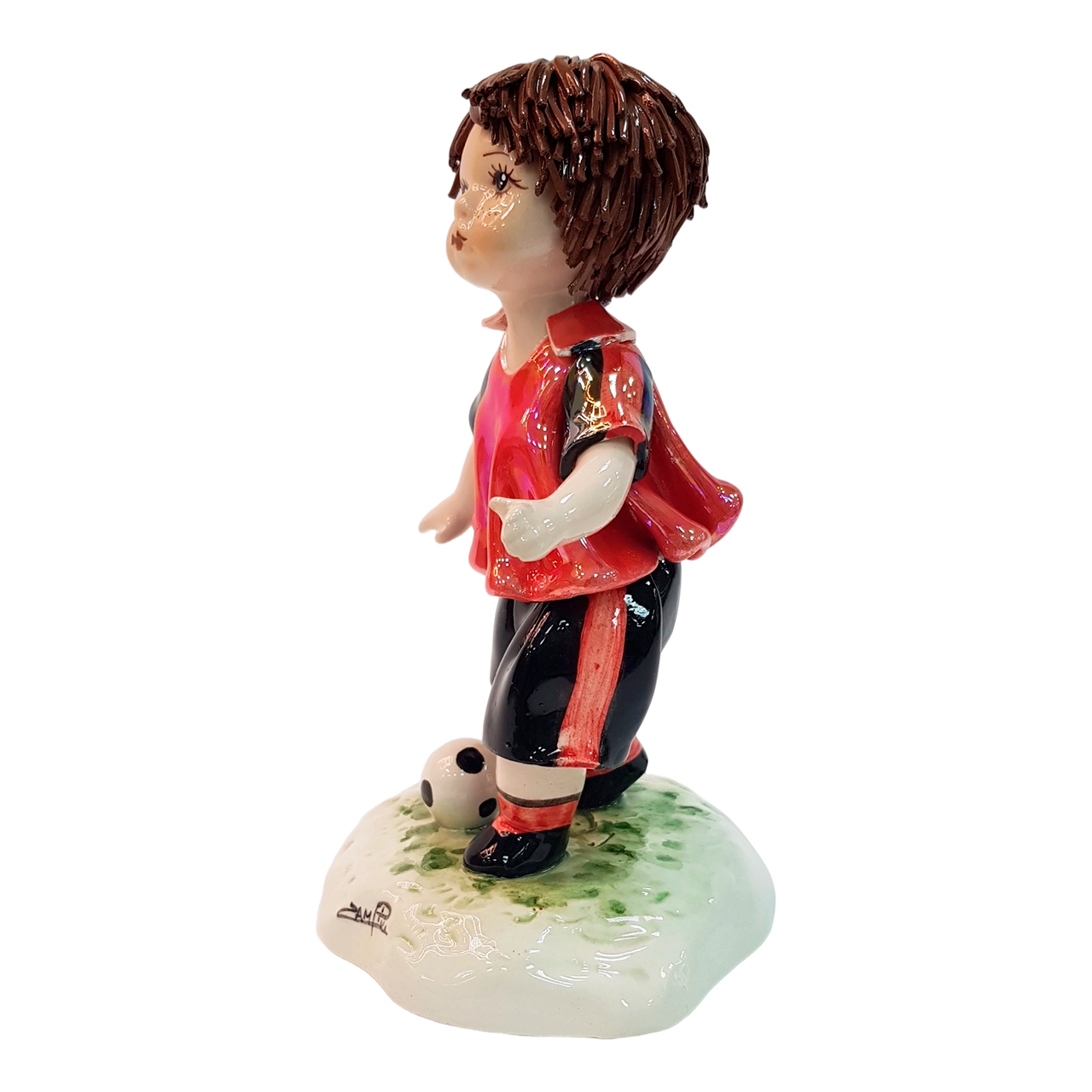 Итальянская статуэтка «Футболист» (красный/черный, 18 см) от Zampiva. Ручная работа, веселая керамика. Авторский стиль Lino Zampiva. Купить оригинальный подарок для болельщика с доставкой по РФ.