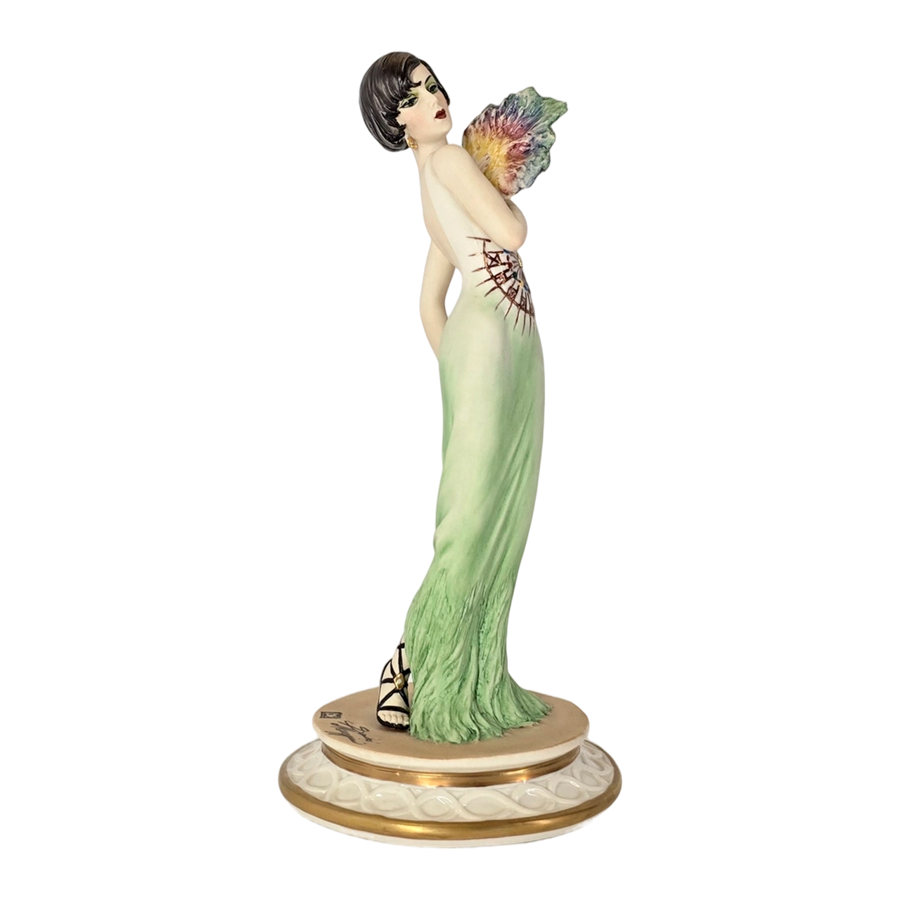 Изысканная статуэтка «Дама с веером в зелёном» (23 см) от итальянской фабрики Elite&Fabris. Ручная работа и роспись. Мода 1917 года с потрясающей детализацией. Купить фарфоровую статуэтку из Италии