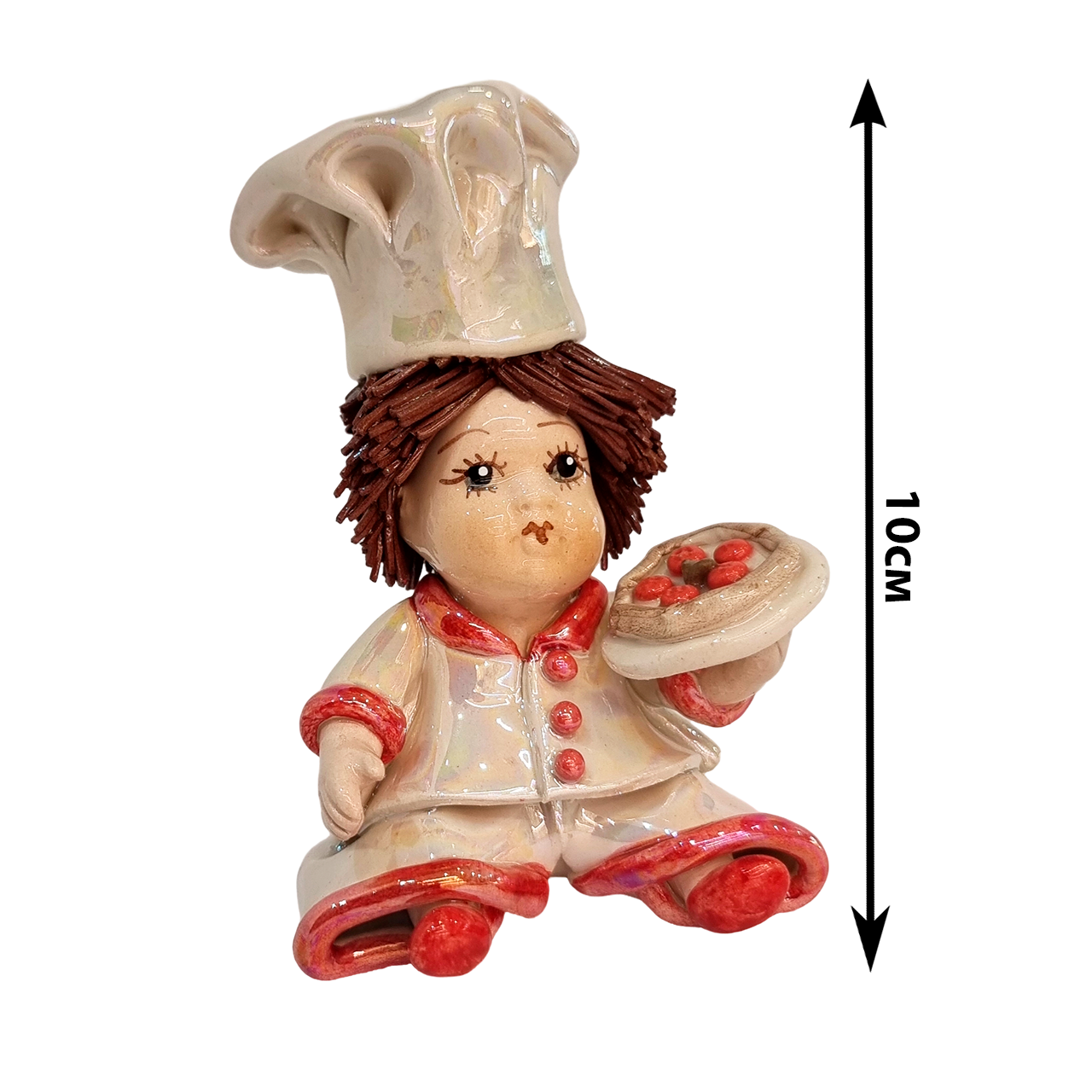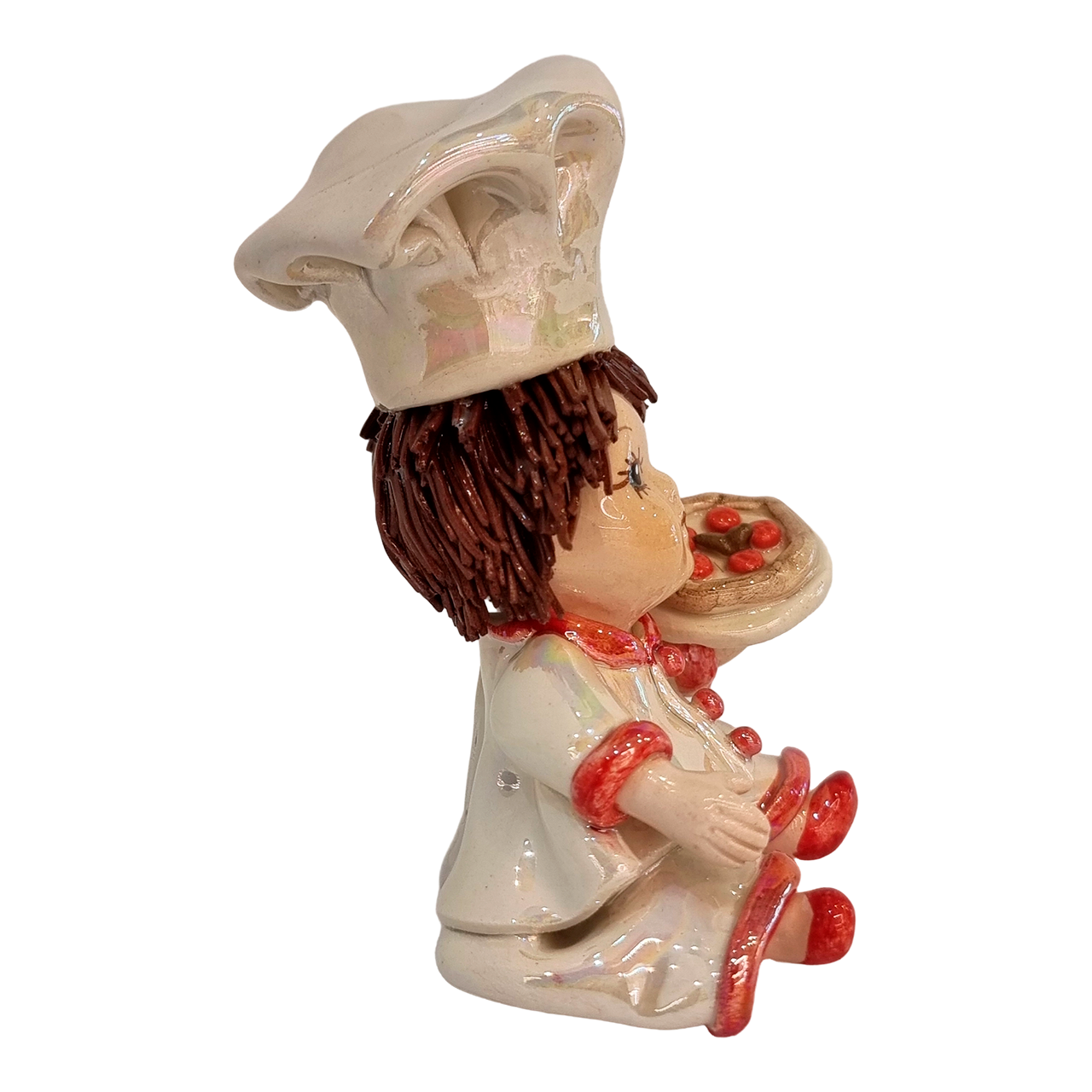 Весёлая керамическая статуэтка «Маленький повар с пиццей» от итальянской фабрики Zampiva. Ручная работа, 10 см. Добрый Пиццайоло для уюта на кухне. Купить итальянский сувенир с доставкой.