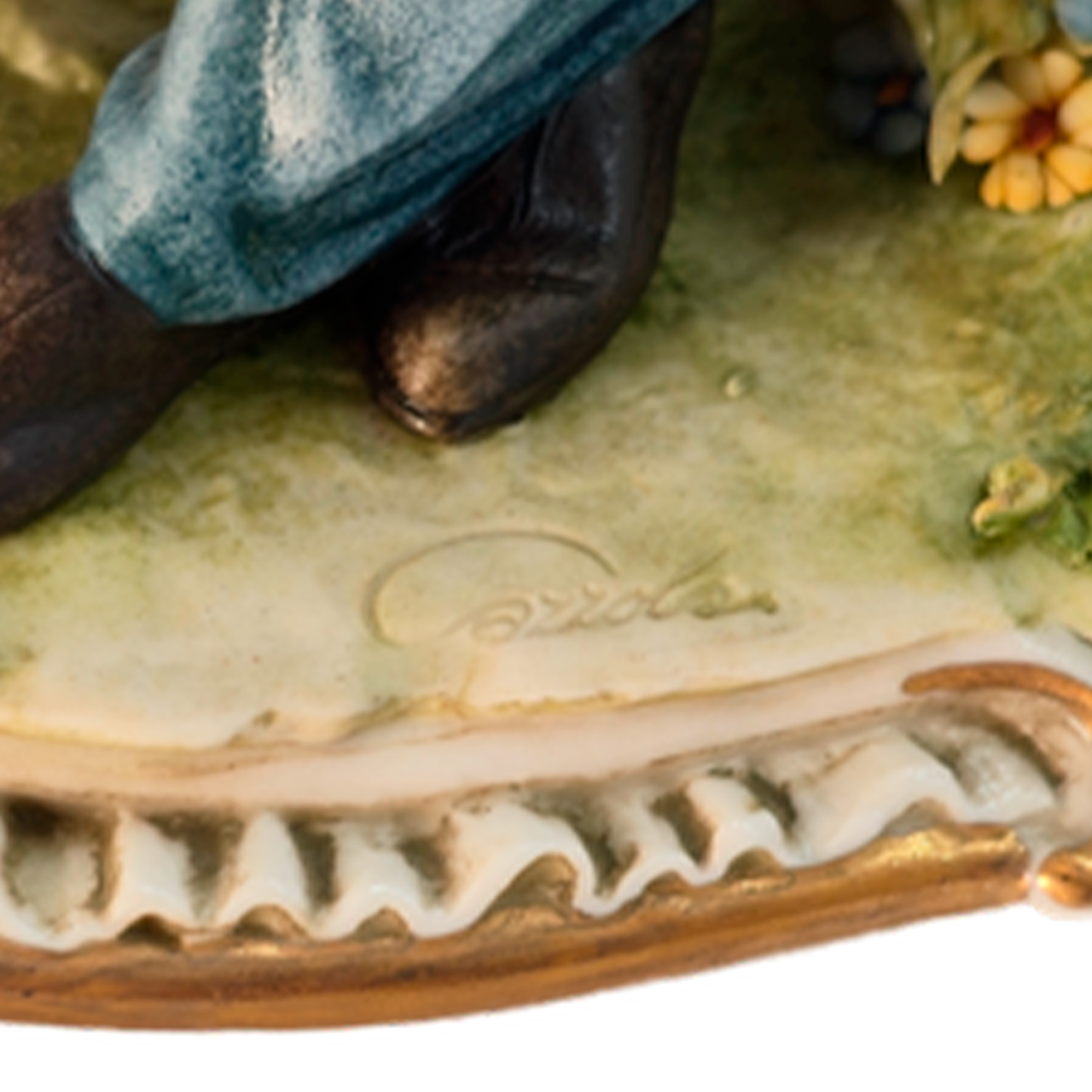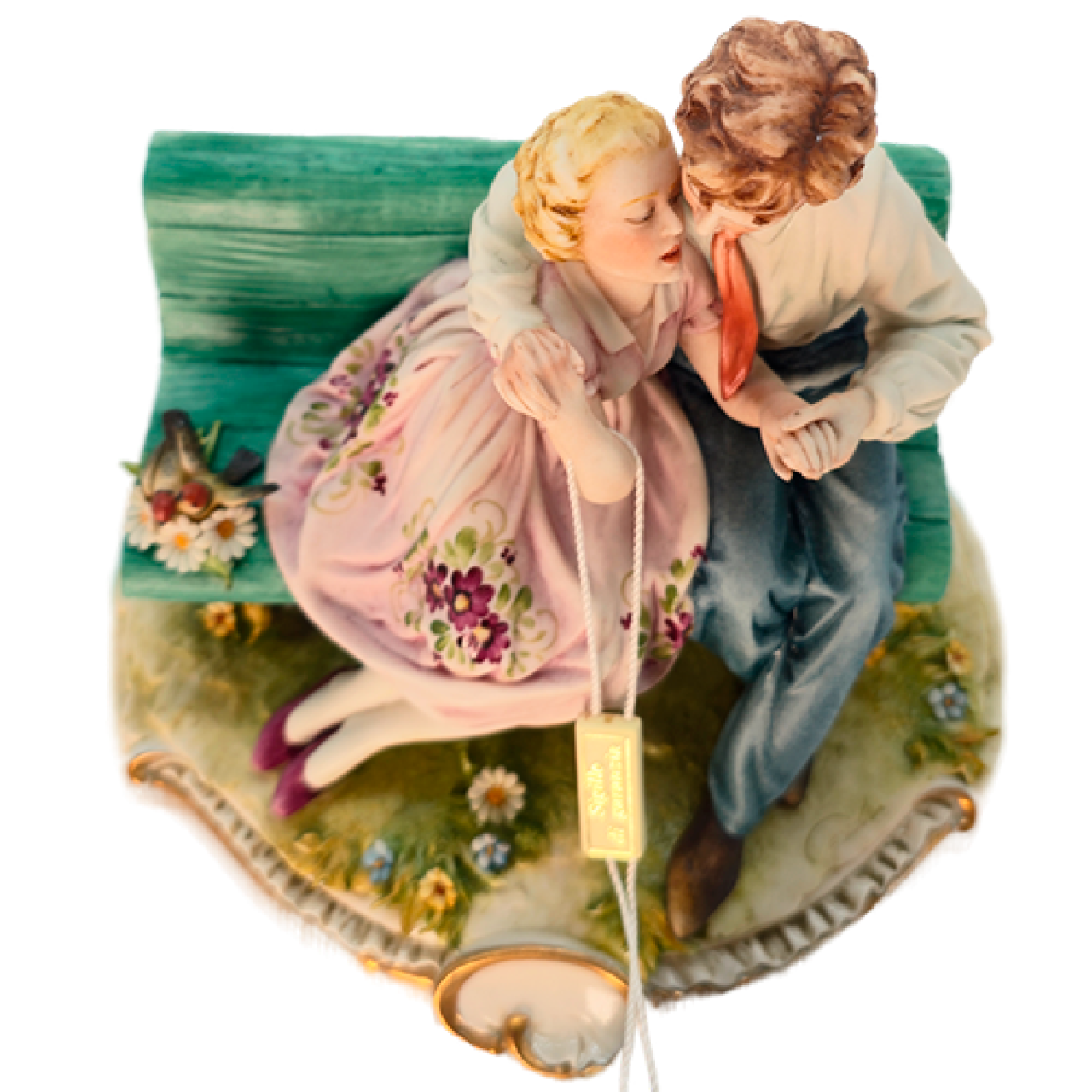 Нежная фарфоровая статуэтка «Влюблённые» от итальянской фабрики Porcellane Principe. Работа скульптора Luciano Cazzola. Матовый бисквитный фарфор. Купить изысканный подарок для двоих.