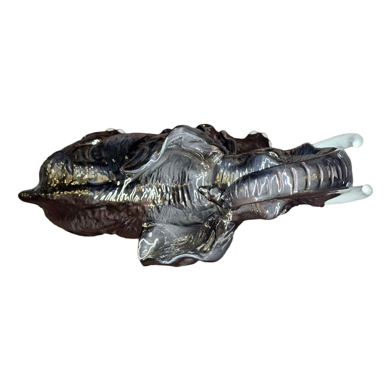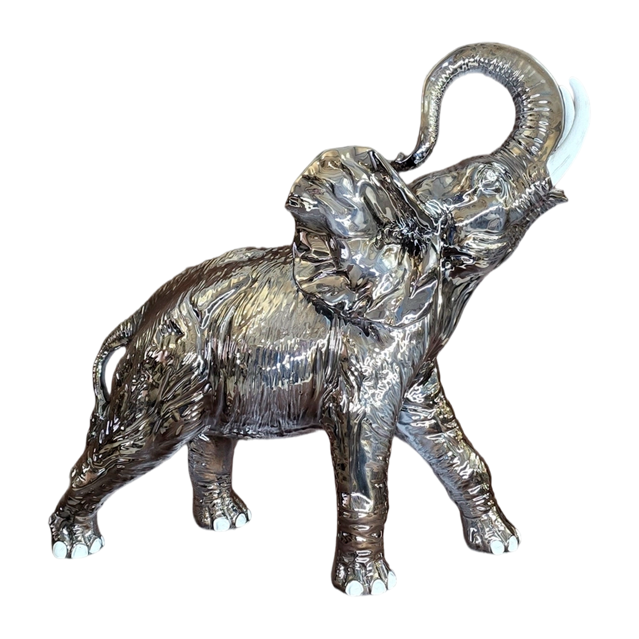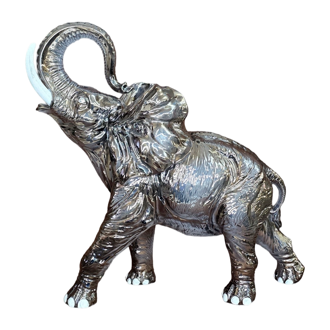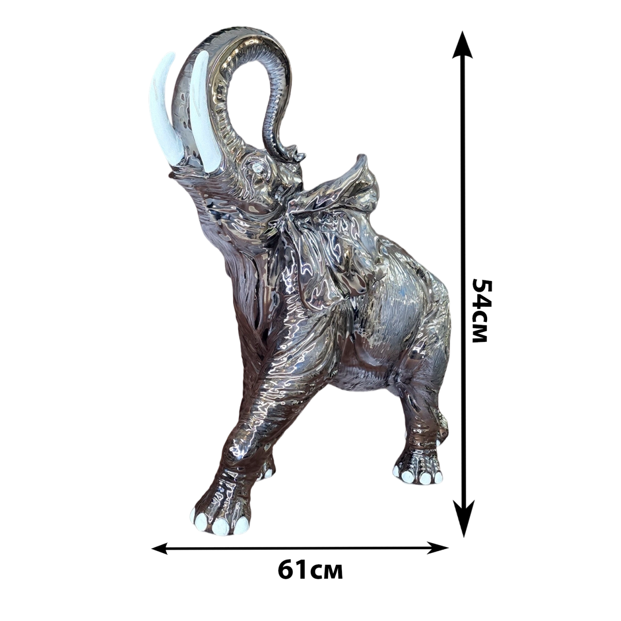 Мощная и элегантная статуэтка «Слон мощный» от Ahura. Керамика, платиновое напыление, размер 54х19х54 см. Уникальный арт-объект для вашего интерьера. Купить эксклюзивную большую скульптуру.
