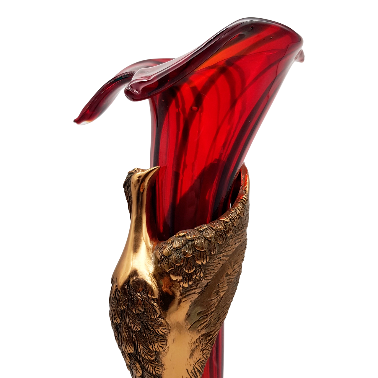 Эксклюзивная ваза Venturi Arte «Ибис» (h 40 см) из бронзы и рубинового стекла Мурано. Лимитированная серия 183/500. Купить редкий экземпляр с доставкой.